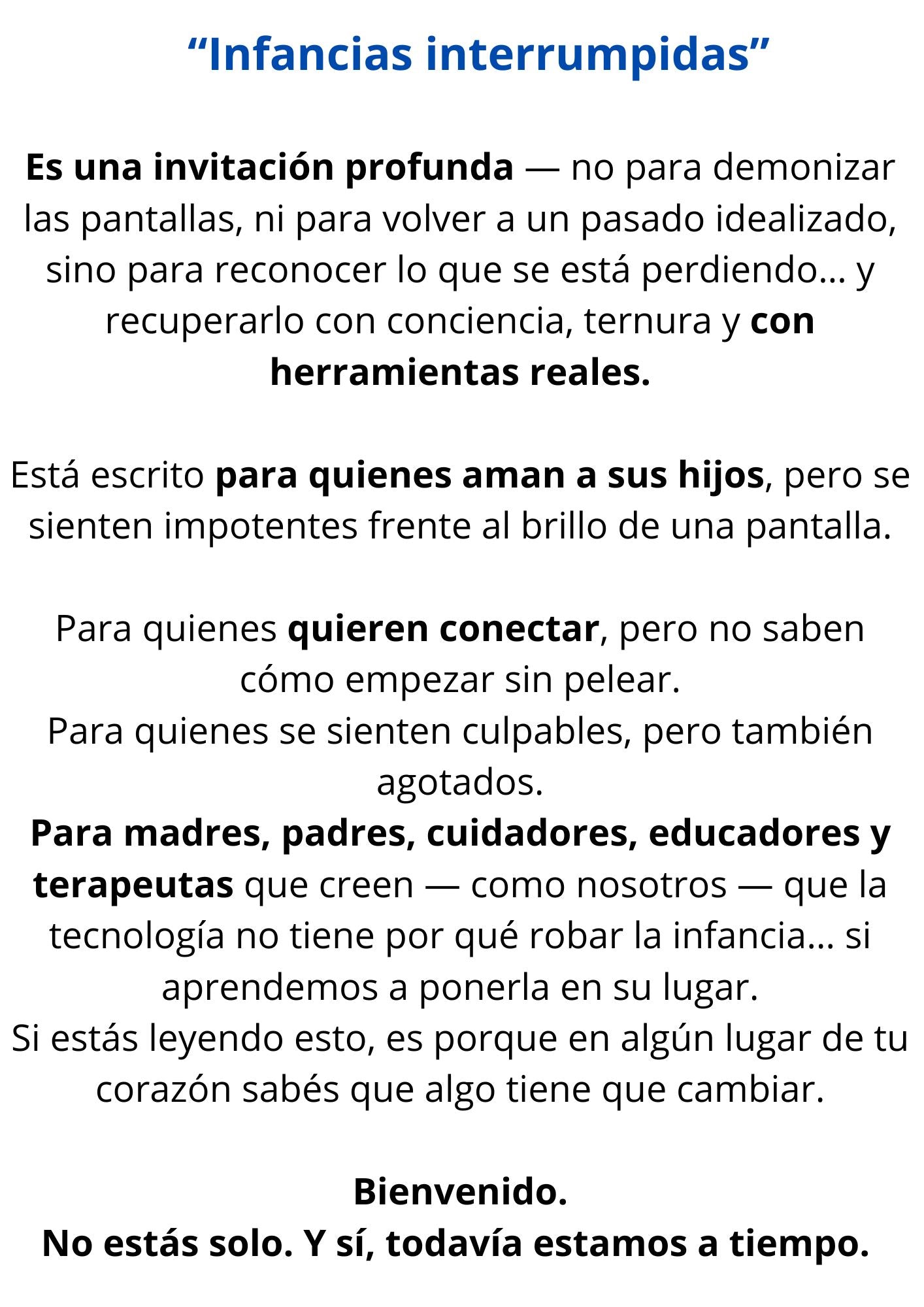 Este no es un manual de “límites y tiempos”. Va más profundo: te muestra cómo las pantallas están reconfigurando el cerebro, las emociones y las relaciones de los niños , y —lo más importante— cómo reconectar con ellos en un mundo digital sin demonizar la tecnología .